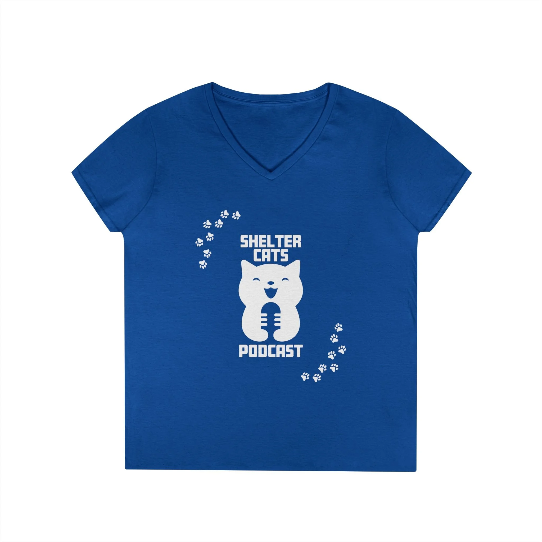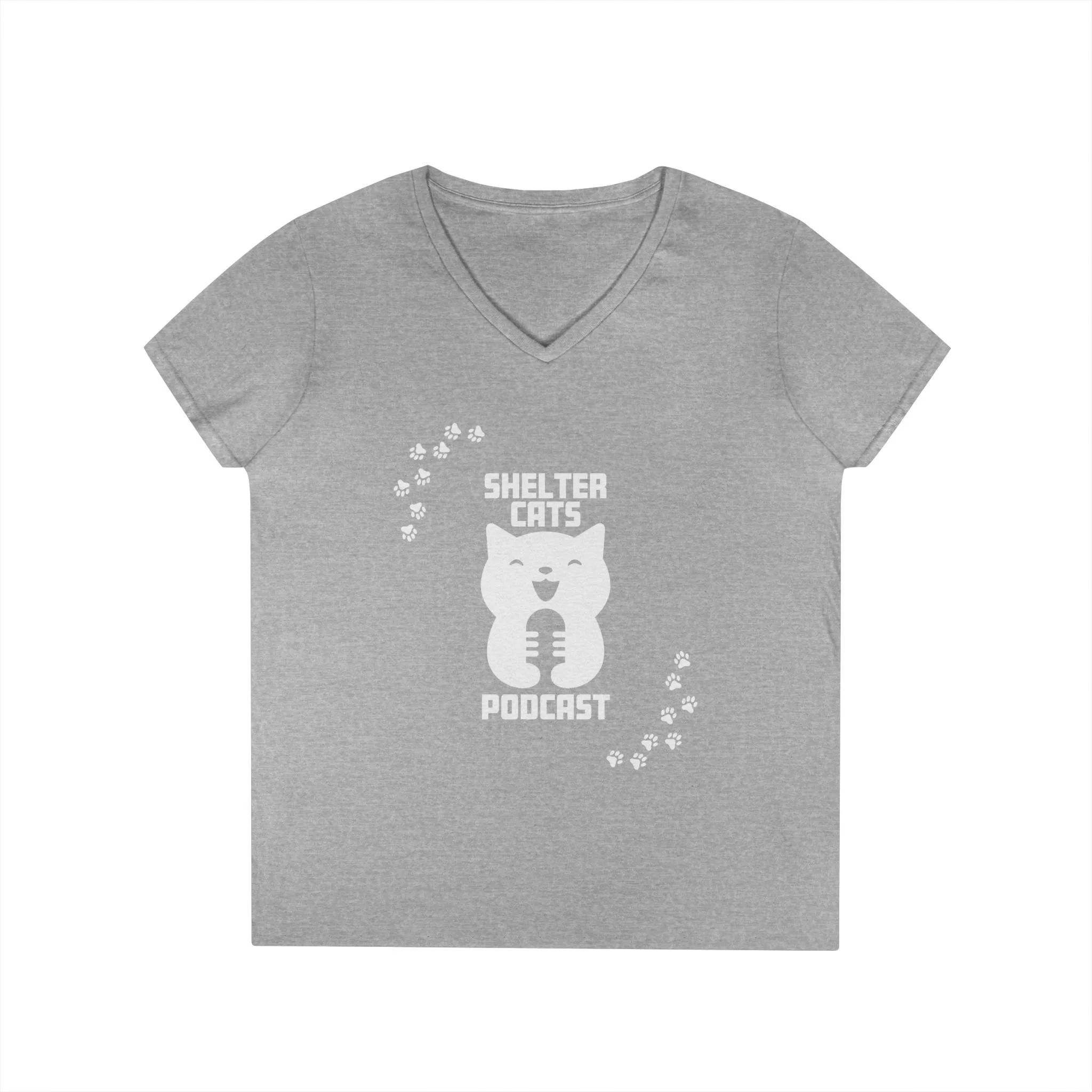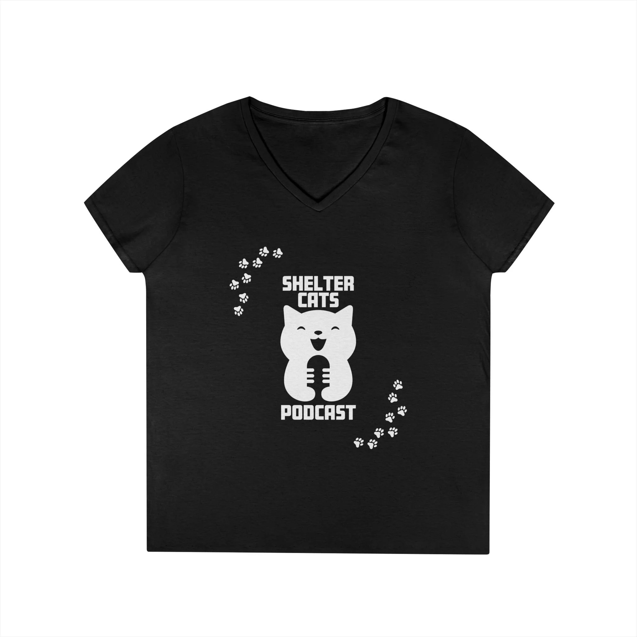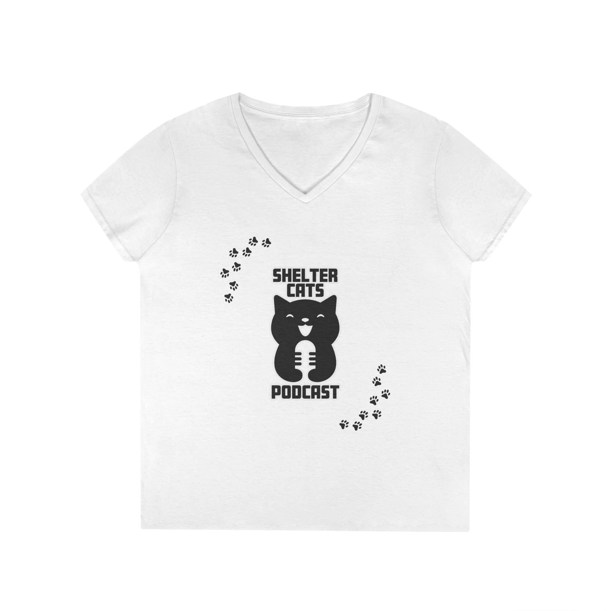 Ladies' V-Neck T-Shirt — "Shelter Cats Podcast" Tee