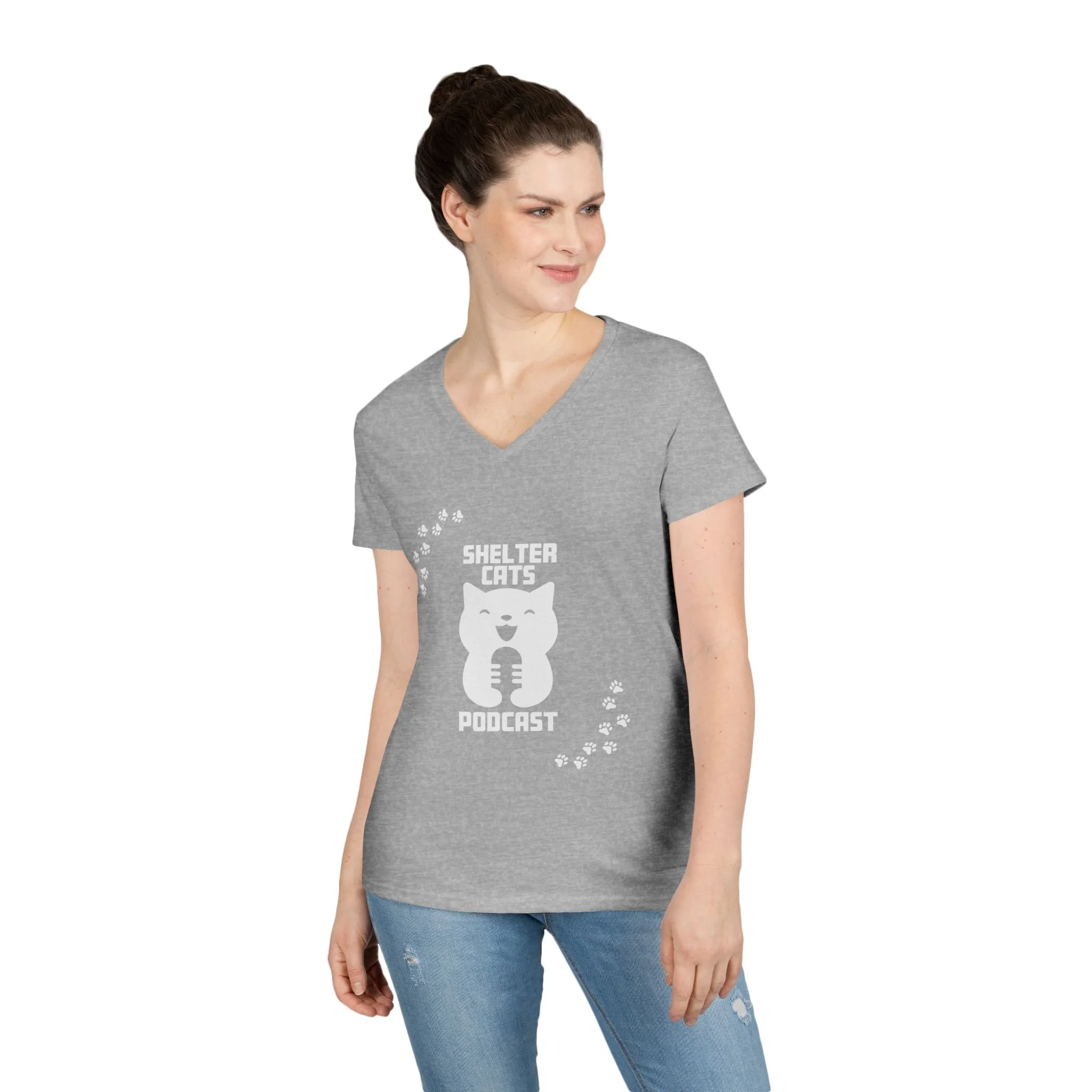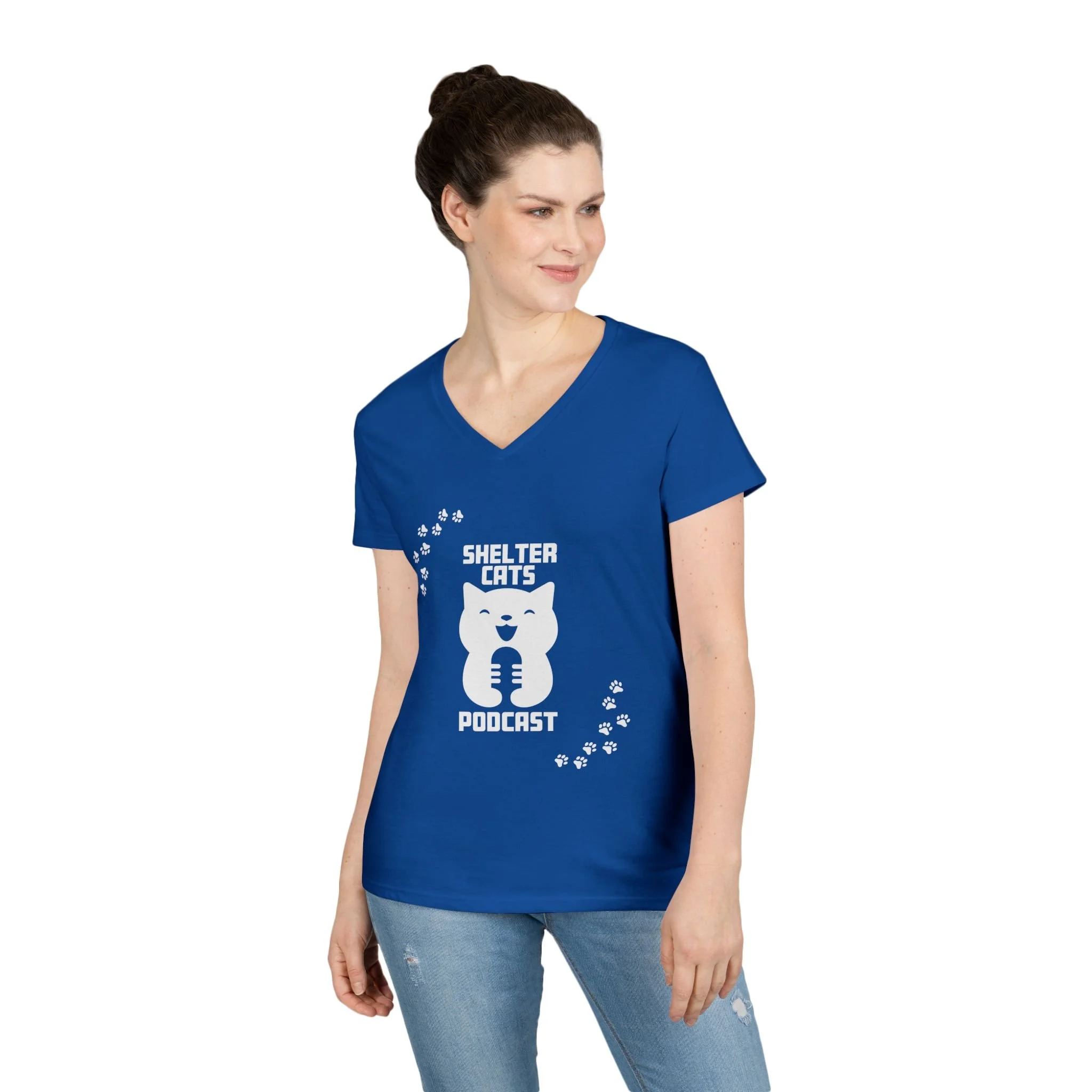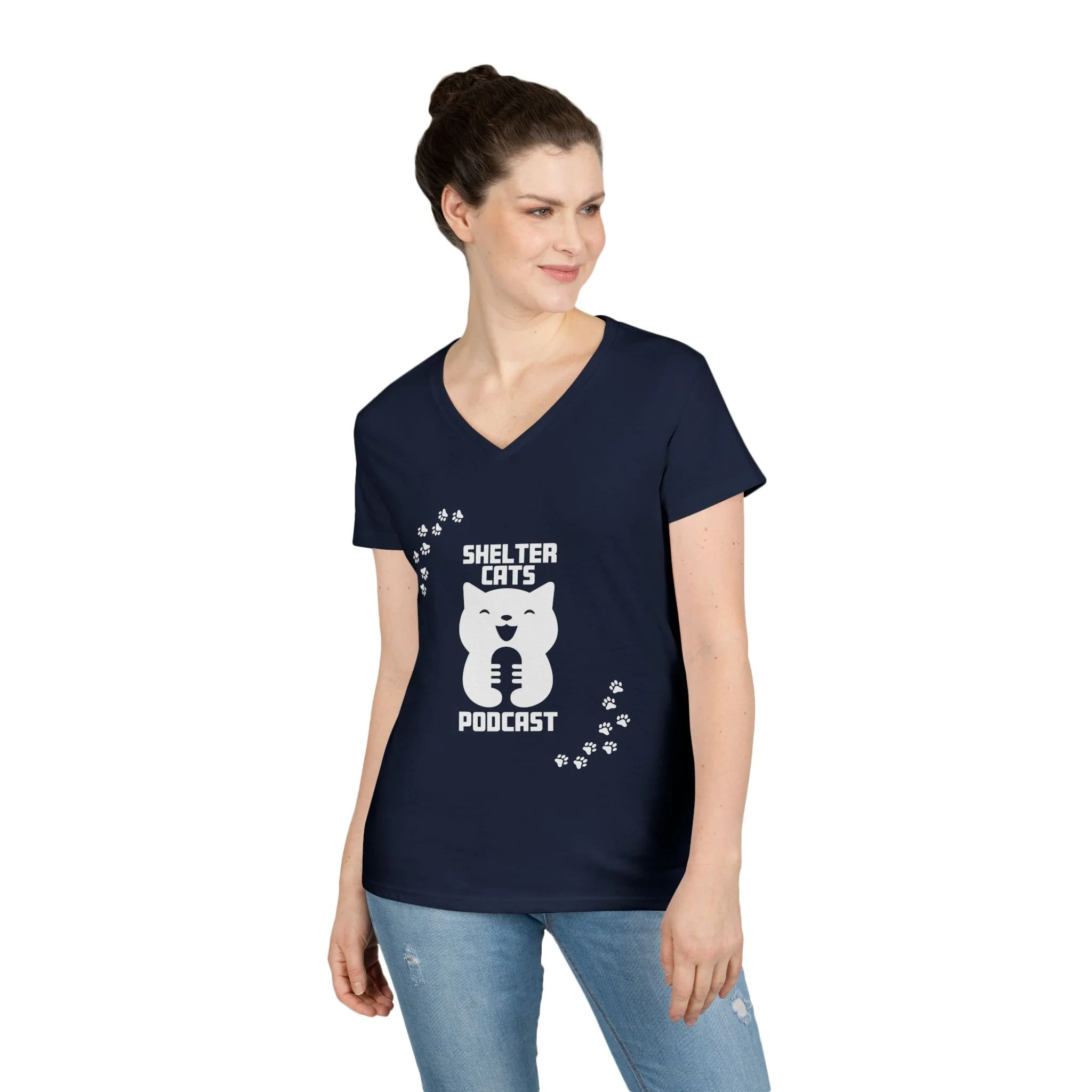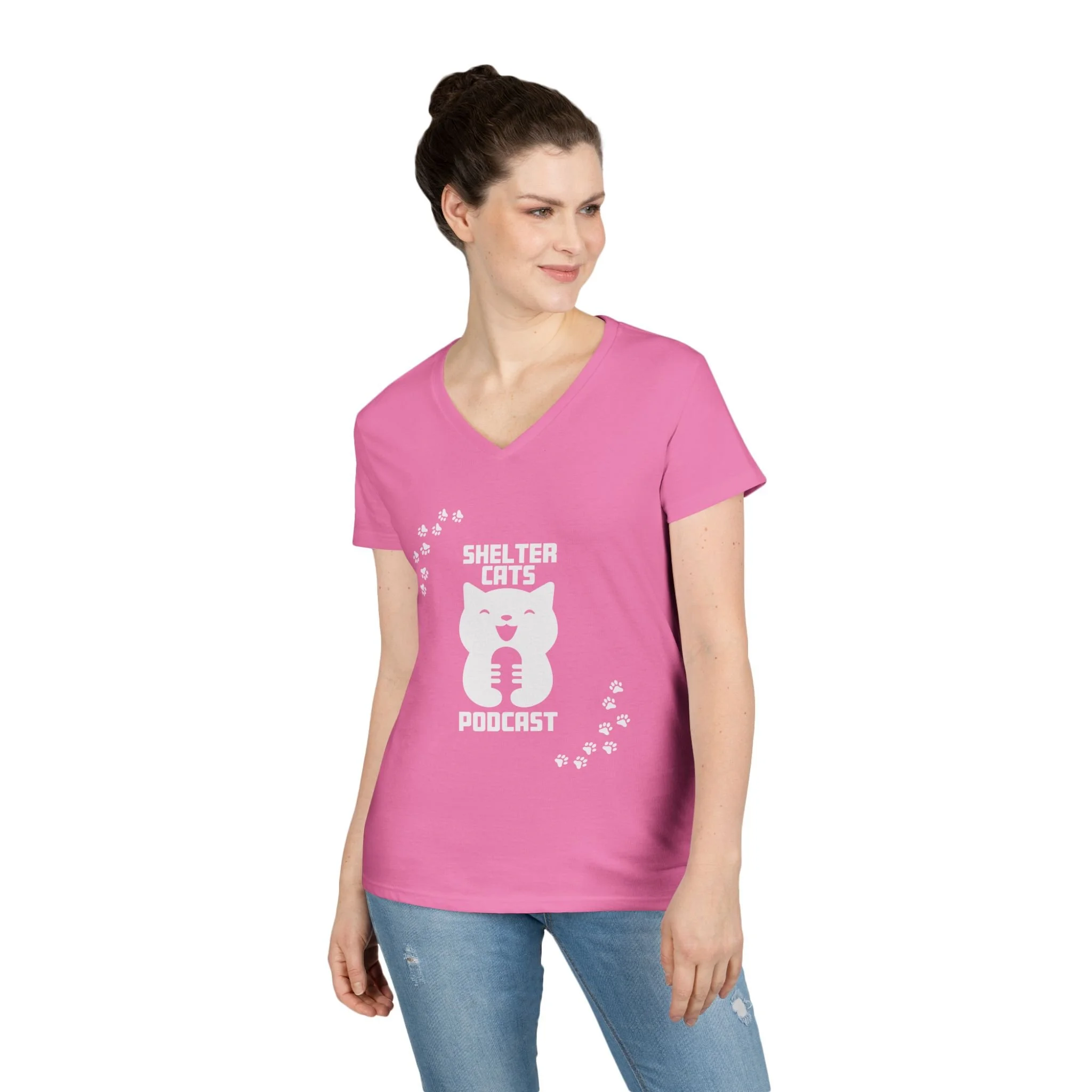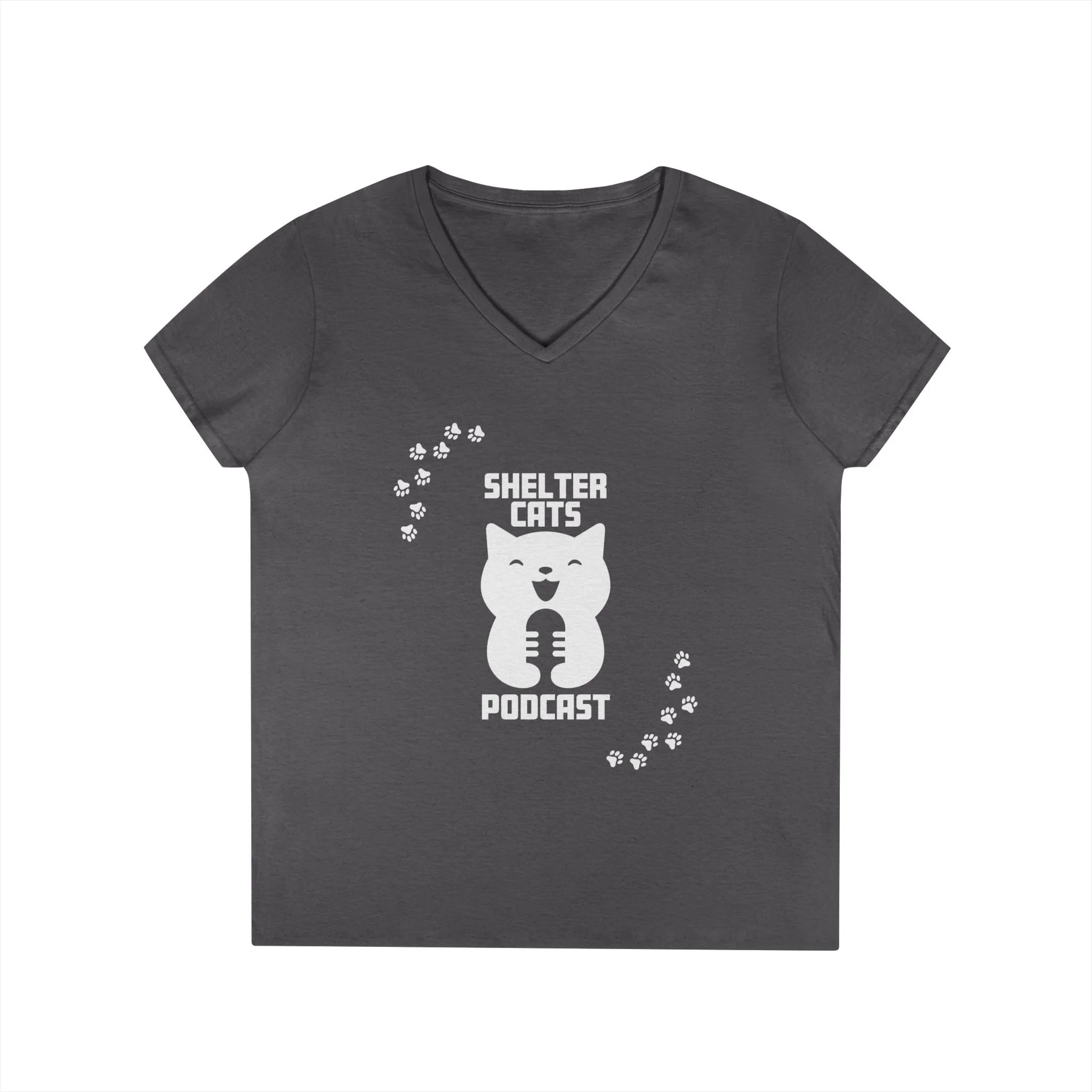 Ladies' V-Neck T-Shirt — "Shelter Cats Podcast" Tee