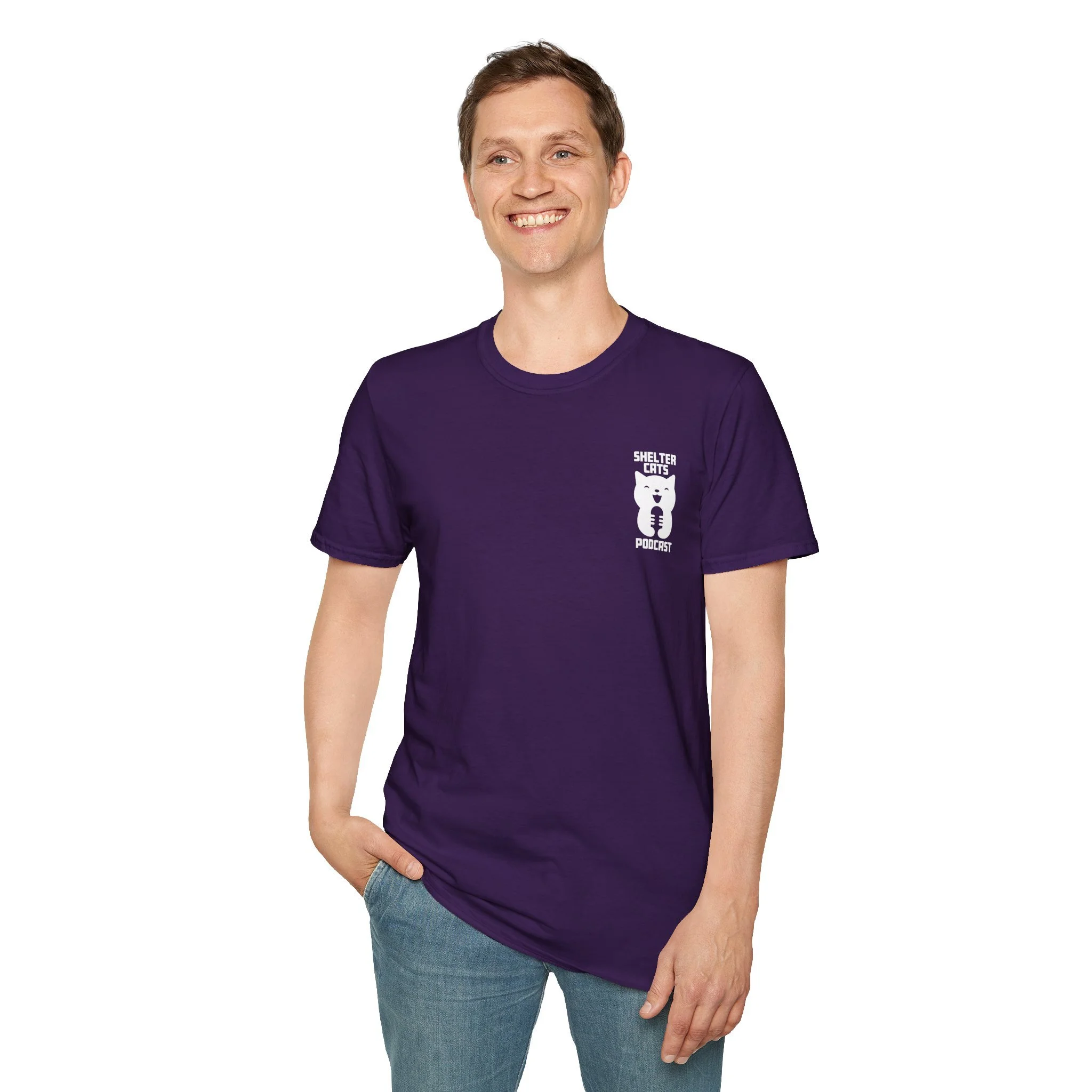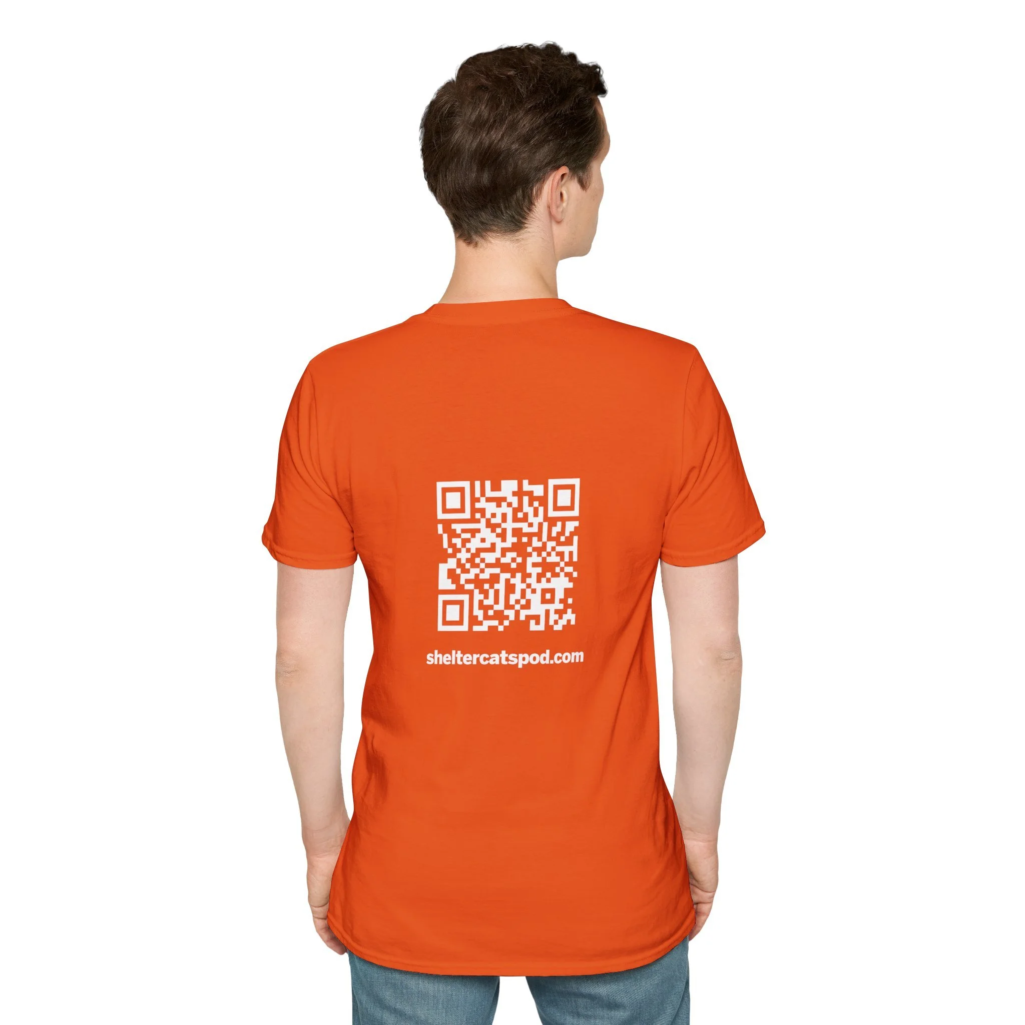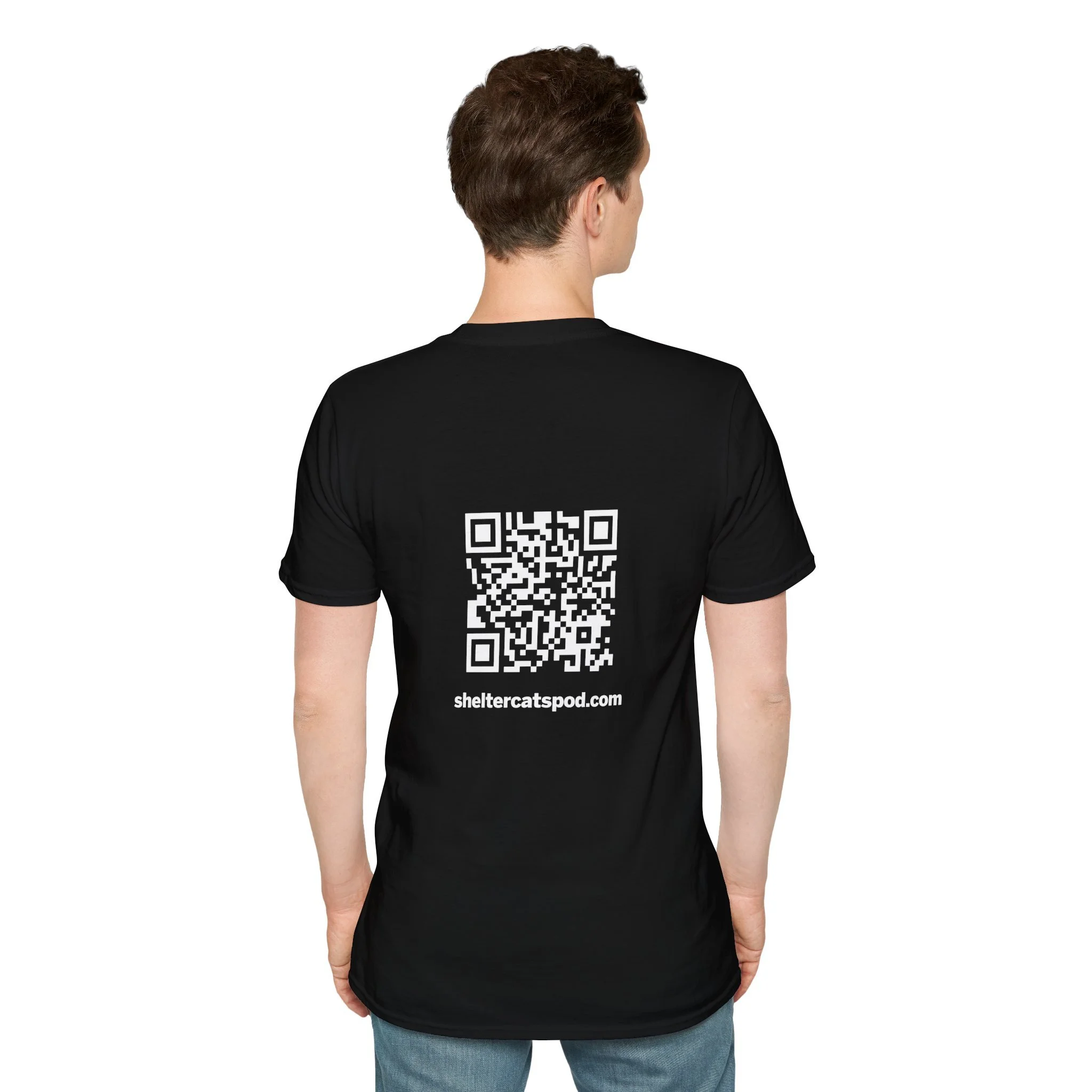 Lightweight, breathable, and thoughtfully designed — this tee belongs in the wardrobe of anyone who lives and breathes animal rescue. A soft white crewneck with a small, hand-drawn cat logo on the chest and a bold QR code on the back that links straight to the Shelter Cats Podcast. It’s an everyday shirt that starts conversations: wear it to adoption events, casual walks, or recording sessions to quietly share your support for shelter animals. The feel is smooth and slightly drapey, so it layers easily under jackets or stands alone on warm days. Every time you pull it on, it’s a reminder of the small actions that help pets find homes.